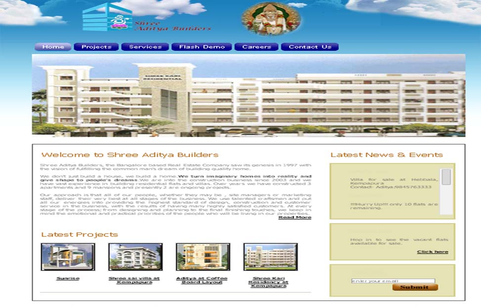 Shree Aditya Builders, the Bangalore based Real Estate Company saw its genesis in 1997 with the vision of fulfilling the common man's dream of building quality home.
